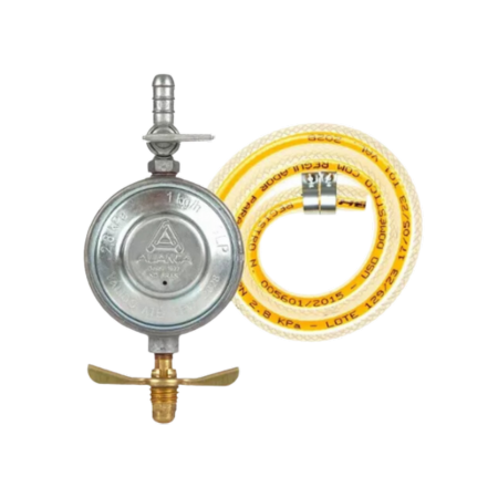 O kit inclui um regulador de pressão e mangueira de alta qualidade, garantindo instalação segura e compatibilidade com padrões residenciais e comerciais.